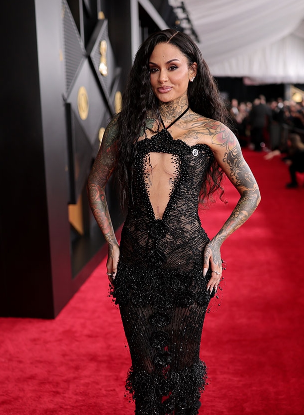 Будучи ведущей в номинации «Лучшая поп-танцевальная запись», она решила сыграть на грани провокации. Ее латексное платье с эффектом прозрачности выглядело как открытый вызов традициям красной дорожки.