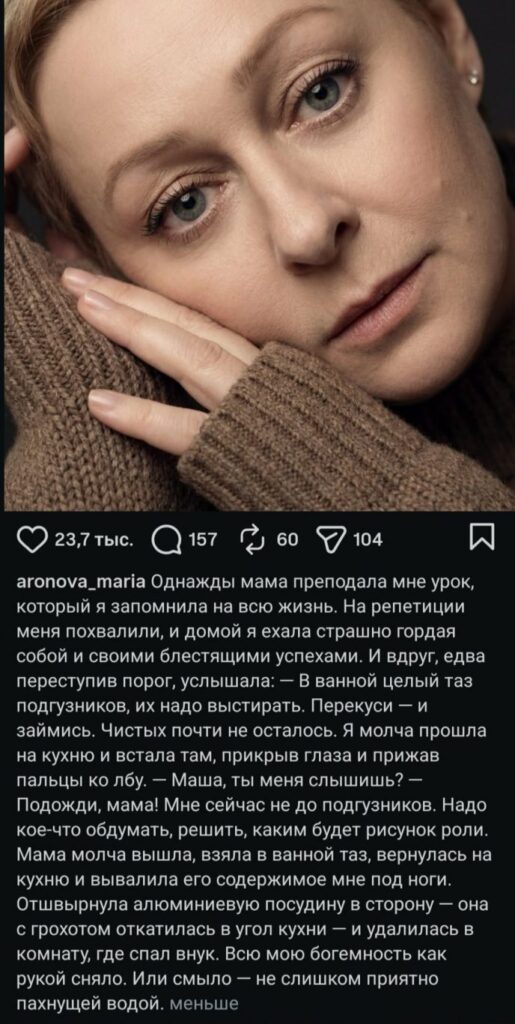Поклонники также выразили мнение, что драматический талант Ароновой заслуживает более масштабных главных ролей, считая ее одной из самых мощных, но при этом недооцененных актрис нашего времени.