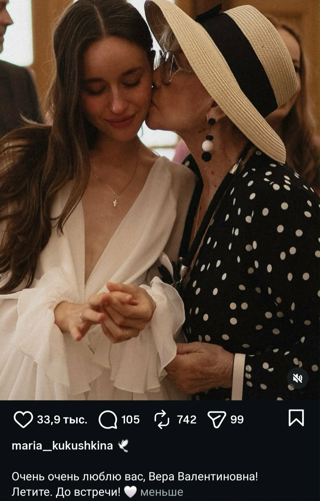 Невестка Юлии Меньшовой обратилась с трогательными словами к Вере Алентовой, опубликовав редкий совместный кадр с бабушкой своего супруга. На этом снимке Вера Валентиновна с особой нежностью прижимается к Марии и целует ее в щеку, словно прощаясь. Этот момент стал особенно символичным на фоне трагической новости. Весть о внезапном уходе великой актрисы стала тяжелым испытанием для всей семьи Алентовой и глубоко тронула поклонников ее таланта. Даже Мария Кукушкина, которой исполнилось тридцать лет и которая обычно избегает публичности, не смогла остаться в стороне.